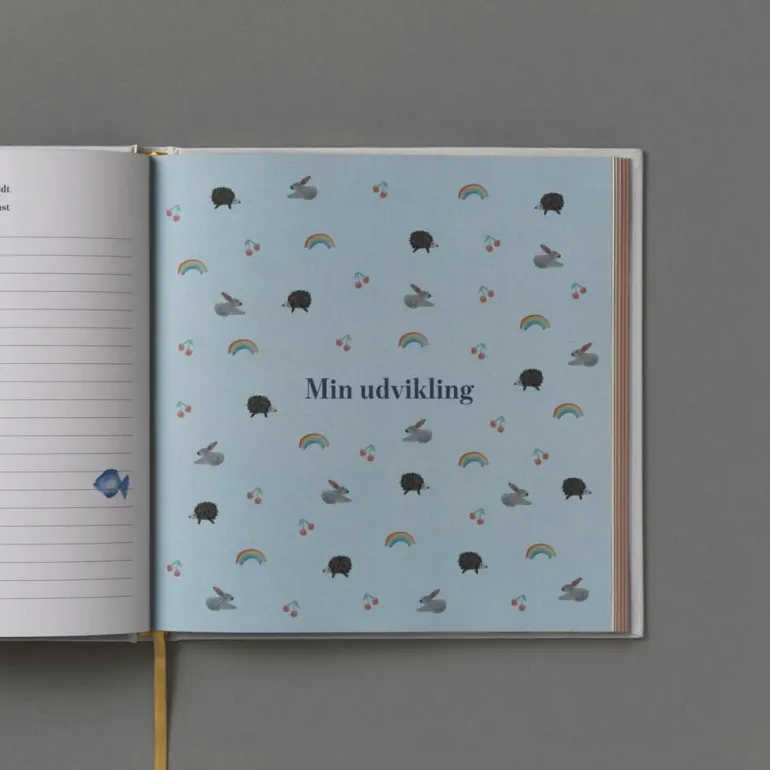 Bogen er fuld af relevante spørgsmål om alt fra graviditeten, babys første tid, personlighed, traditioner i familien mm. og giver mulighed for at notere alle tankerne om den altoverskyggende kærlighed, der vokser i takt med barnet. I udfyldt stand bliver ‘Mine første år – Minder og Gemmer – Special Edition’ en mindeværdig skattekiste af ord og billeder, der vil blive værdsat mange år frem.