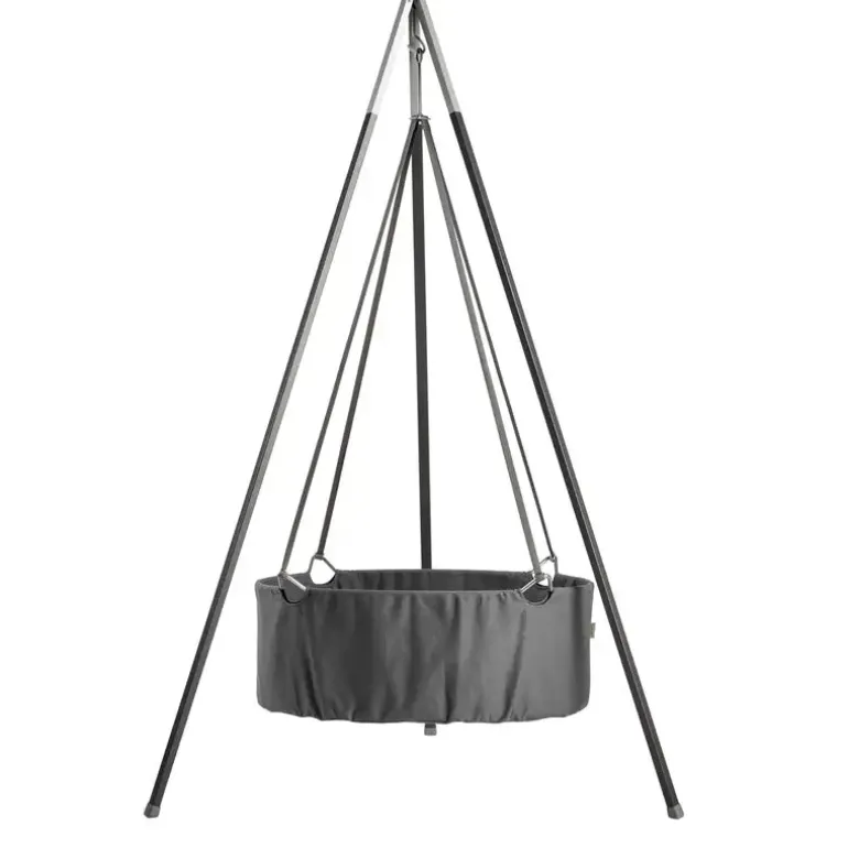 Leander Vuggestativ til Leander Vuggen er let at flytte rundt i rummet og kan klappes sammen når man ikke bruger det. Af sikkerhedsmæssige årsager bør stativet kun benyttes sammen med Leander vuggen. Ophængning af andre produkter eller genstande f.eks. fjedre i stativet sker på eget ansvar.