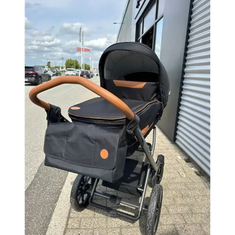 Lækker Lux organizer med plads til (næsten) det hele! Plads til 2 flasker i rum med køle/varmeisolering. Nem montering på styret, med fine cognac læderdetaljer.