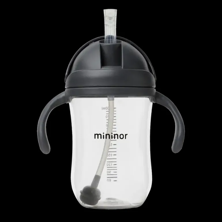 Mininor koppen har et smart låg, som kan skubbes frem og tilbage. Sugerøret er fleksibelt, og foldes sammen, når låget skubber over den. I låget er der også et lille lufthul, som sikrer, at der ikke skabes undertryk.