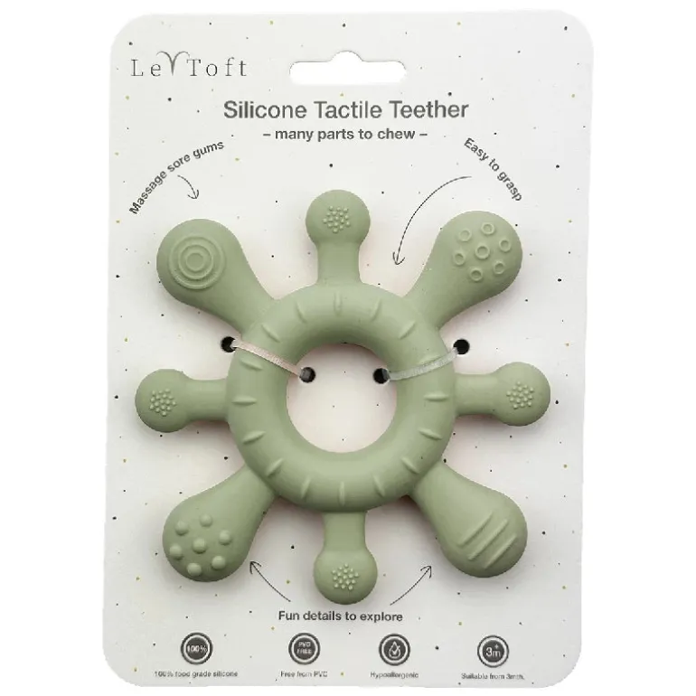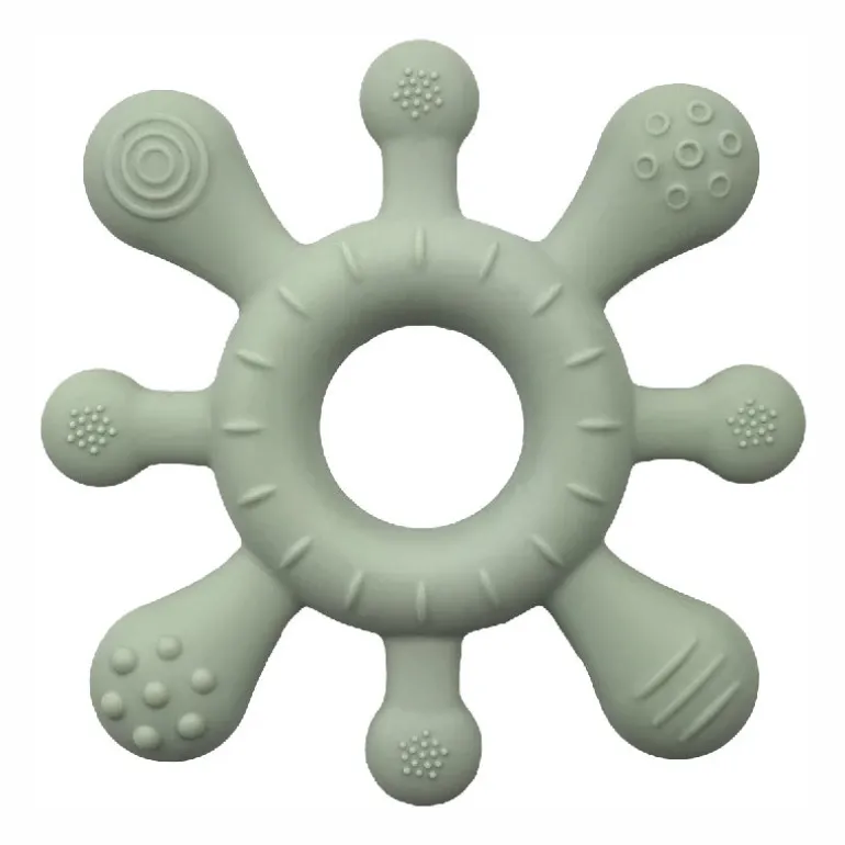 Legetøjet er produceret af 100% fødevaregodkendt silikone. Legetøjet er super fleksibelt og nemt for de små at få fat i og holde. Designet gør det ekstra sjovt og spændende at udforske, og stimulerer barnets sanser med de mange små detaljer. Blød og fleksibel silikone gør legetøjet ekstra behageligt at lege med, og de forskellige teksturer masserer blidt barnets ømme tandkød under tandfrembrud.