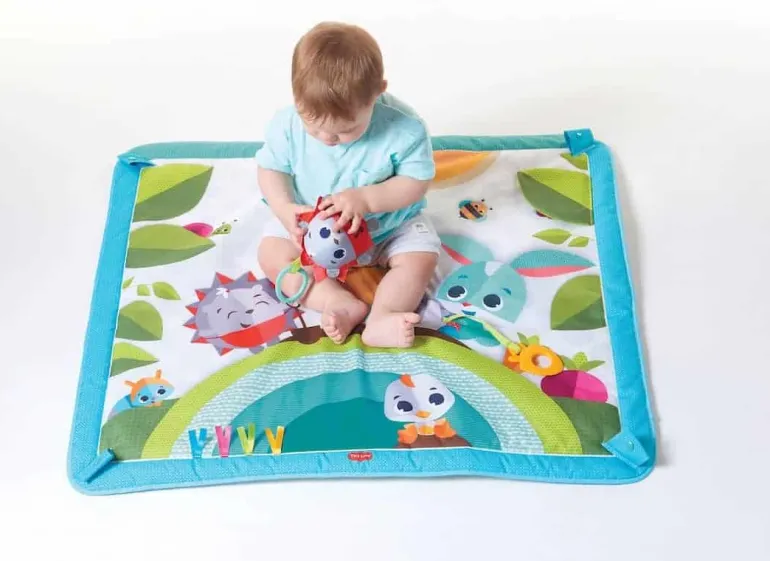 – 2-i-1 baby-aktivitetsmåtte med justerbare buer