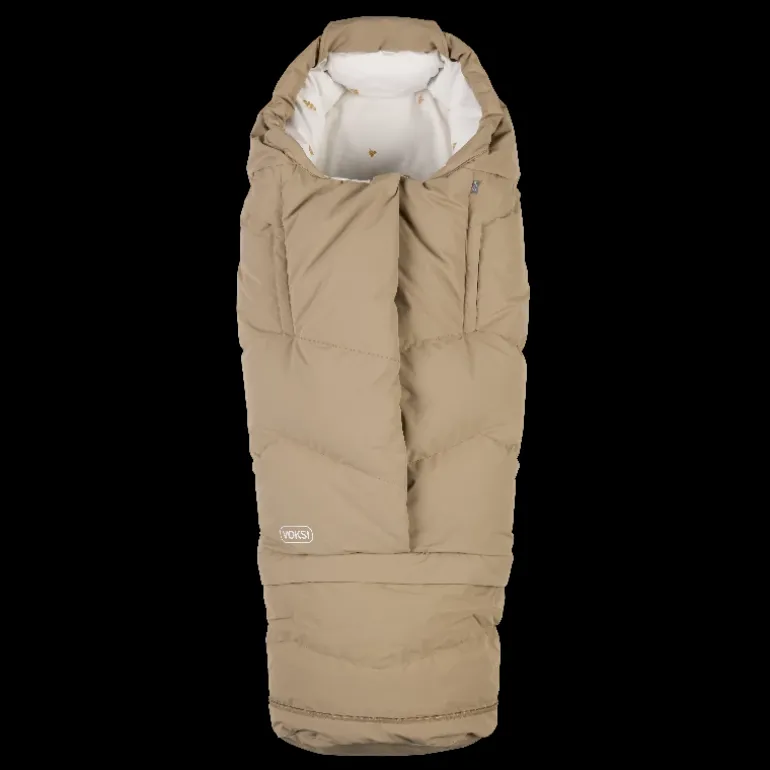 Køreposen består af naturlige og kvalitetssikre materialer som uld og dun. Voksi City North har uld i ryggen, som temperaturregulerer og sørger for at barnet holdes tørt. Fyldet er af højkvalitetsdun og posen er syet med en unik bokskonstruktion, der forhindrer kulde i at slippe ind. Det er luften mellem dunfibrene som giver maksimal isolering og holder barnet varmt i det kolde vejr.