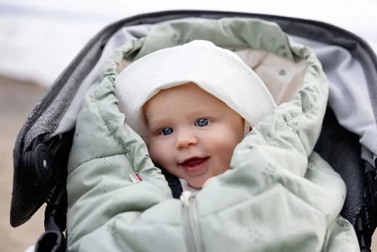 Voksi® Sky Light har en inderside af blødt bomuld og er fyldt med et tyndt lag af genindvunden polyester. Køreposen leveres med en forlængerdel, der betyder, at den kan bruges i mange år.