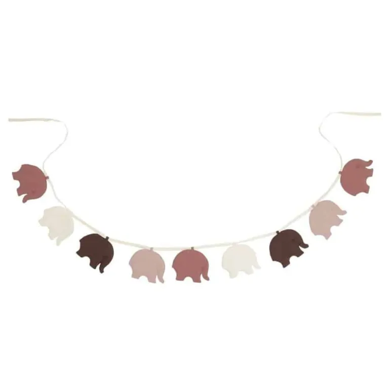 Elefantguirlande med ni små elefanter i de smukkeste farver, der passer perfekt ind på børneværelset.