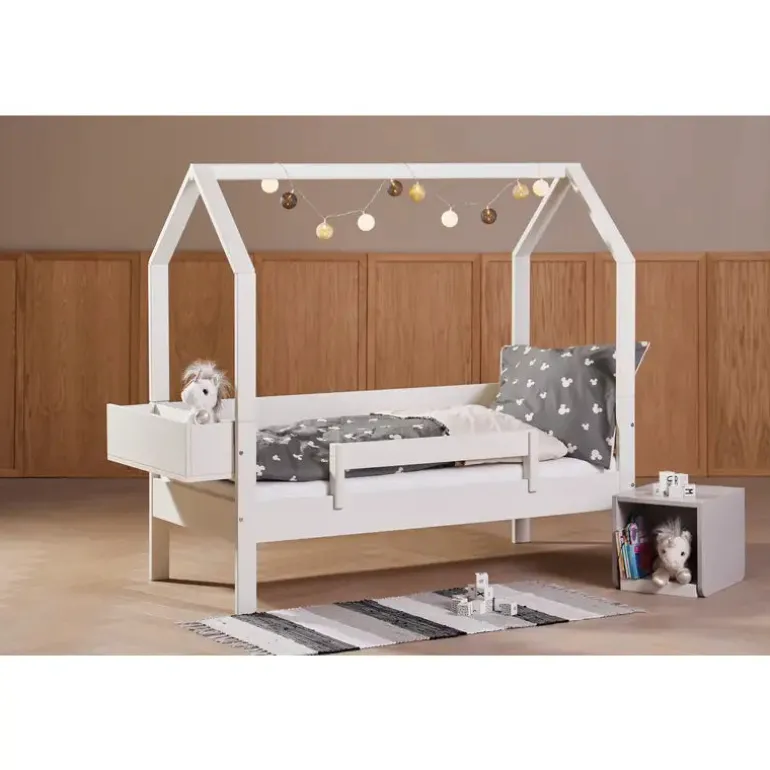 Denne charmerende juniorseng med himmel tilbyder et hyggeligt og trygt miljø for dit barn. Designet med muligheder og kan nemt omdannes til en enkeltseng, halvhøj legeseng eller endda en køjeseng, efterhånden som dit barn vokser.