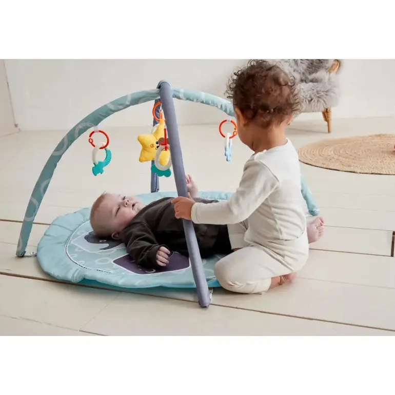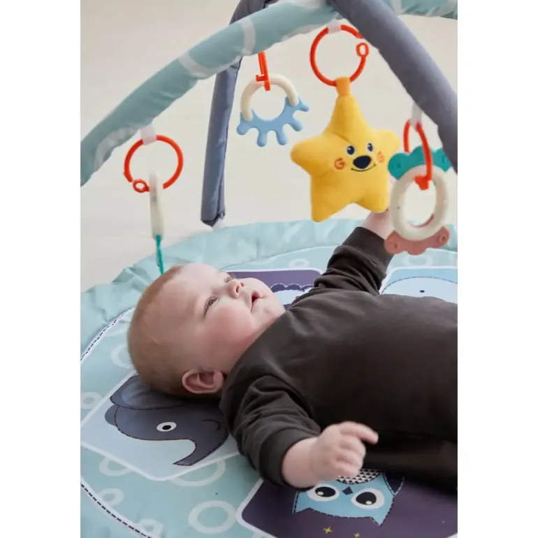 Aktivitetsstativ med dyretema fra Scandinavian Baby Products. Vores aktivitetsstativ og det medfølgende legetæppe er pyntet med mange søde dyr. Der medfølger fem stykker aktivitetslegetøj, som kan sættes op i stængerne. Aktivitetslegetøjet motiverer din baby til at se på det og gribe ud efter det.