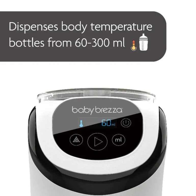 – Fungerer med stort set alle mærker af pulver og alle mærker/typer af flasker (høje flasker, typisk over 260 ml, kræver en lift-up stander, der sælges separat, find den her https://babybrezza.dk/products/formula-pro-mini-forhojningsbas)