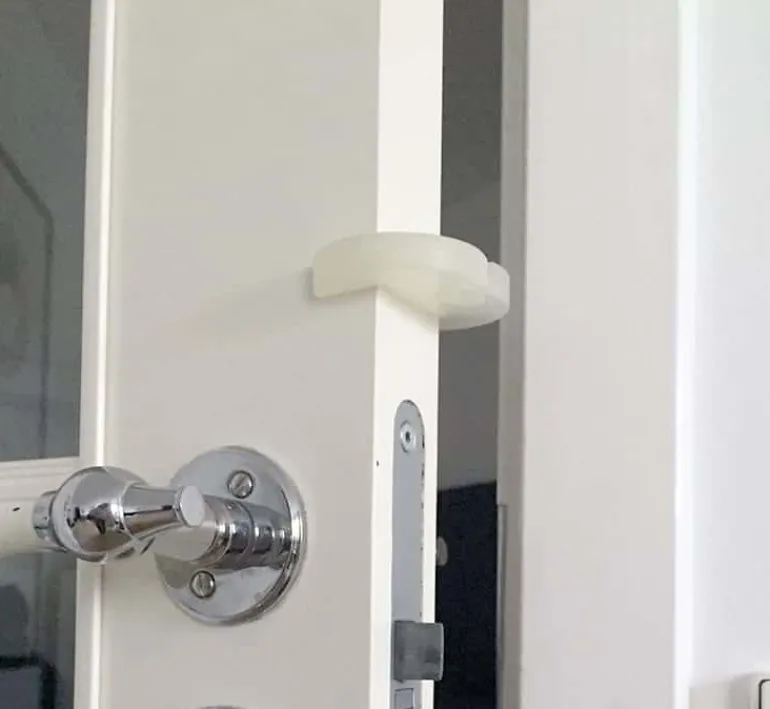 Du kan forhindre dit barn i at få fingrene i klemme i døren, ved at bruge Fingerbeskytteren på dørene. Den er nem at bruge og du kan sætte den på dørhåndtaget, når du ikke har brug for den. Du kan bruge den på indvendige døre i alle typer materialer og med alle typer hængsler. Den er lavet til dørtykkelser mellem 35 mm og 40 mm. Fingerbeskytteren er i en 100% bionedbrydelig emballage og er Cradle to Cradle certificeret. Det betyder, at emballagen vil blive nedbrudt naturligt og efterlader ingen spor, som kunne skade vores planet. På den måde kan du beskytte din lille guldklump fra ulykker og tage ansvar for den verden, som dit barn vokser op i.