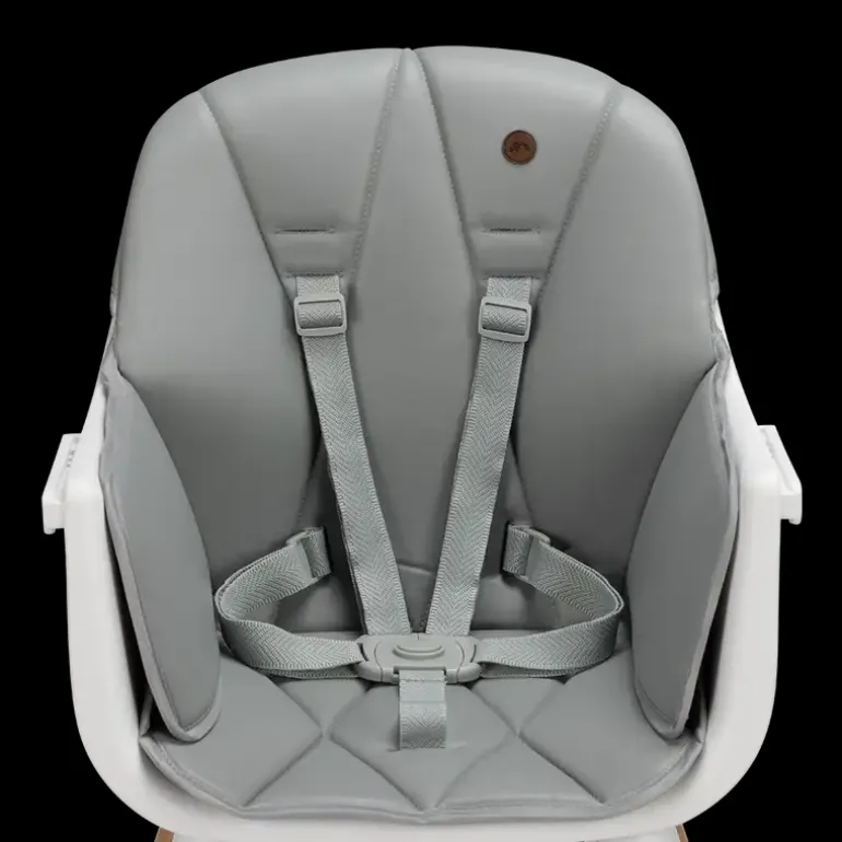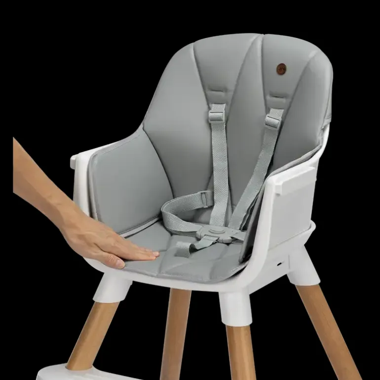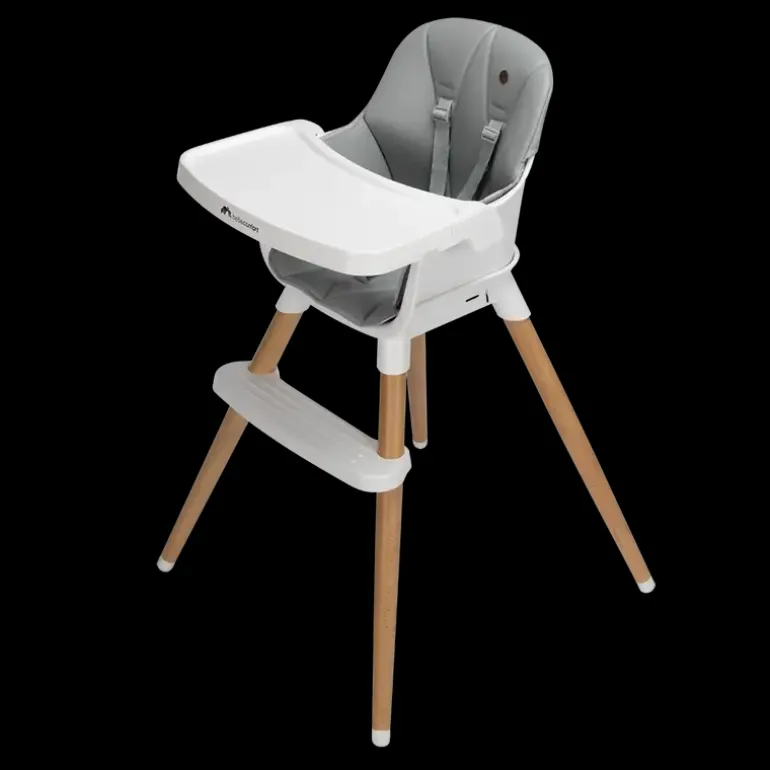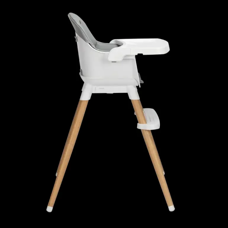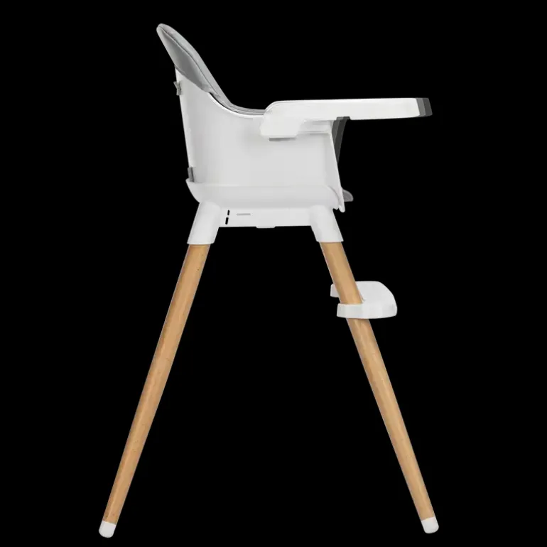 Højstol I scandinavisk moderne design. Levers med en blød hynde, der er nem at gøre ren. Bakken foran barnet er nem at indstille eller kan tages af. Der medfølger en 5 punkt sele, så barnet sidder godt og sikkert fra 6 mdr-3 år eller 15kg.