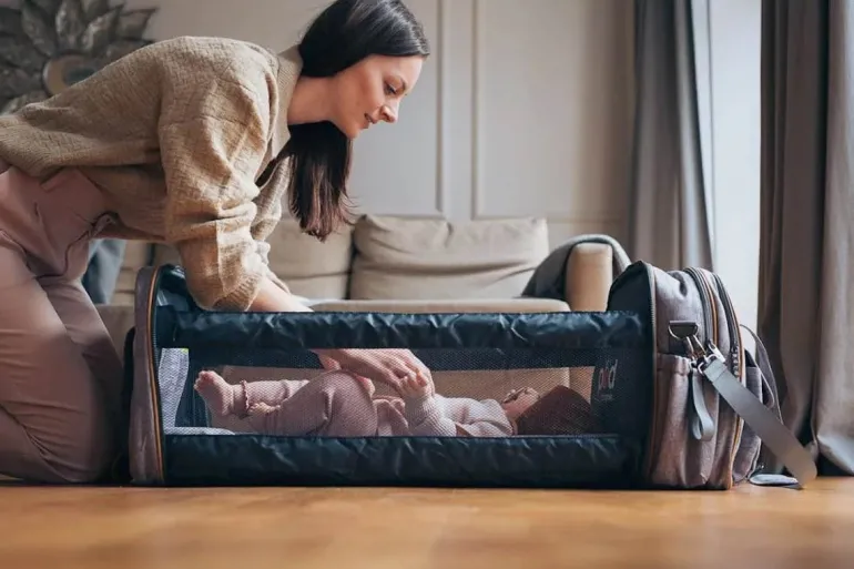 Ved at bruge de medfølgende letvægtsstænger til at sikre siderne, kan din baby sove sikkert og komfortabelt i den udfoldelige sengesektion. Den er sikkerhedsgodkendt efter BS EN 1466:2014, så du trygt kan lade dit barn sove i den. Samlingen af