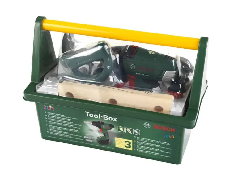 Bosch Værktøjskasse 23×31 cm m/skruemaskine sav hammer skruer m.v 3xAA batt. ekskl. +3år