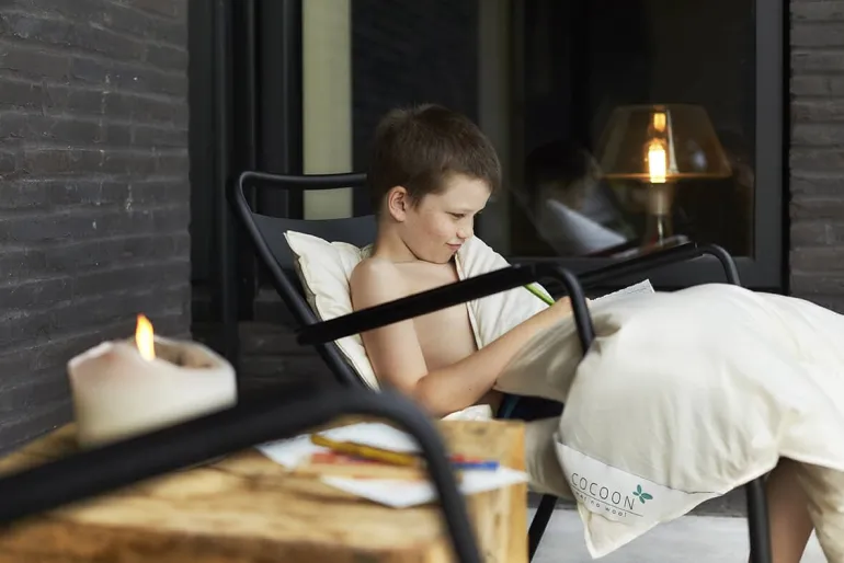 Cocoons merino uld juniordyne er et eksklusivt soveprodukt lavet af den fineste økologiske Merino uld fra sydamerikanske Merino får. Serien indebærer dyner og puder til baby, junior og voksen. Lavet af en silkeblød og 100% GOTS certificeret bomuldsmetervare omkring en blød kartning af vores ubehandlede økologiske Merino uld fibre. Serien af Merino Wool soveprodukter er udviklet og designet i Danmark. Produceres i EU af de bedste certificerede europæiske metervarer og den fineste økologiske Merino uld.