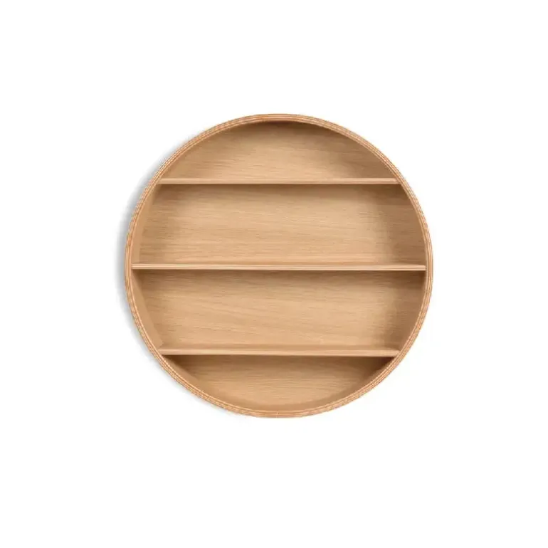 Round Shelf. CURVE LAB. En stilfuld udstillingshylde i børnehøjde, løft din indretning med Curve Lab’s Round Shelf. Lavet af bøgetræ har denne moderne hylde en unik rund form, der tilføjer et strejf af elegance til ethvert børneværelse. Det er både dekorativt og praktisk og giver en mere elegant mulighed for at vise dit barns små skatte frem på med stil.