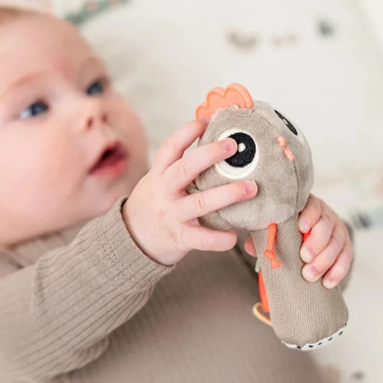 Sensoriske elementer som en rangle og forskellige teksturer vil stimulere dit barns hørelse og taktile sans