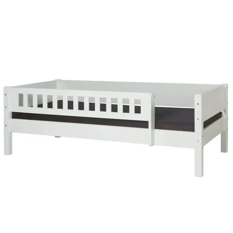 Rigtig god begynderseng – en sikker overgang fra babysengen eller måske fra den lille juniorseng. Her kan barnet sove trygt og godt – “indrammet”, så det ikke falder ud, men samtidig med nem adgang til sengen uden at skulle kravle over sengehesten.