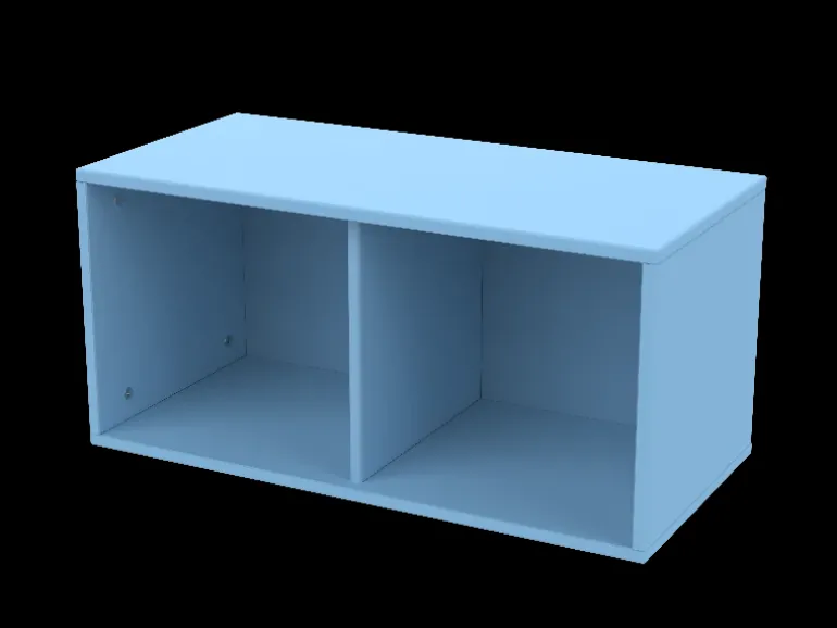 I Roomie-bogkassen kan dit barns bøger, legetøj og tøj opbevares frit fremme. Du kan hænge denne bogkasse med to rum op på væggen i både lodret og vandret position. Nu, hvor der er styr på det hele, er det tid til at lege og have det sjovt!