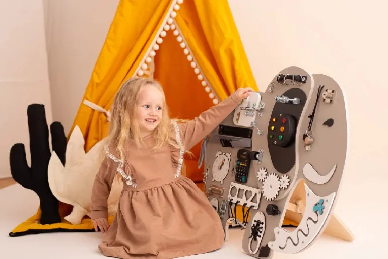 Sjovt og den aktivitetstavle med flest elementer!. Denne model monteres på væggen.