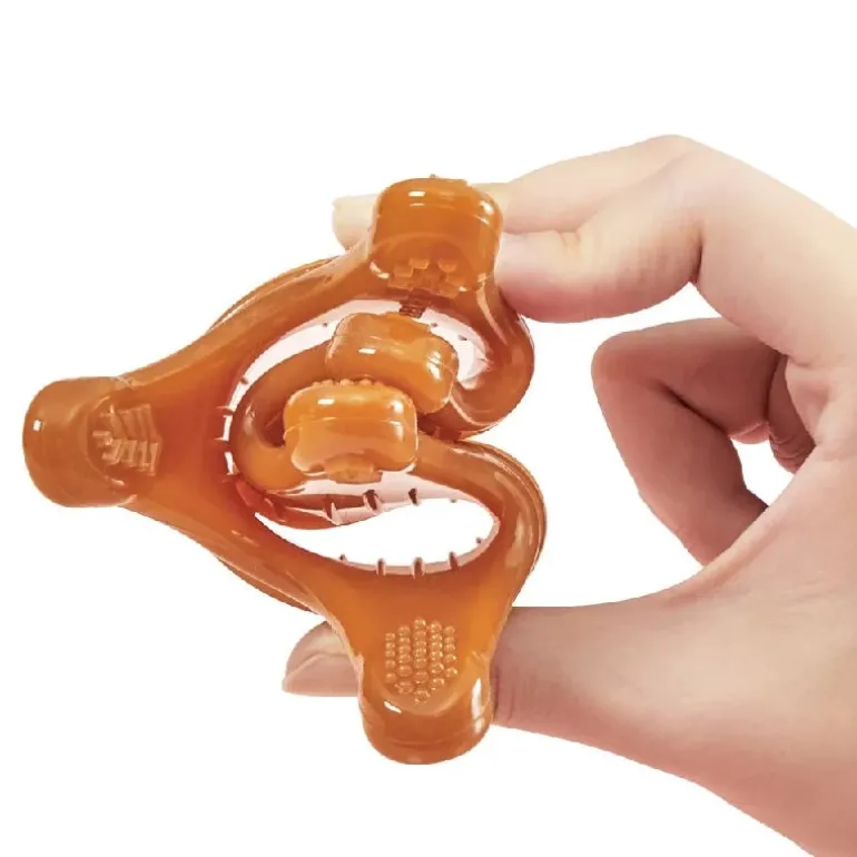 Det smarte design er med til, at udvikle barnets motoriske evner til leg og finmotorik, samtidig med den lindrene ømme gummer og nye tænder. Du kan også putte bideringen i køleskab, og dermed tilføje en kølig lindring.