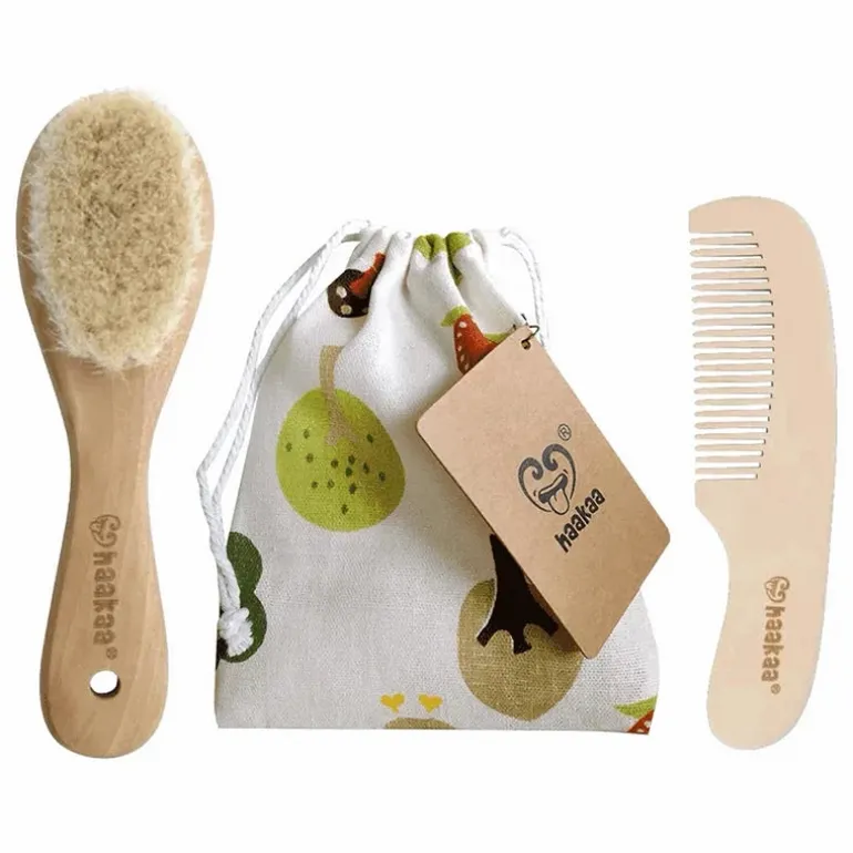 Haakaa kam og børste er et sæt med både en lækker kam af træ fra gummitræ og en børste med hår af gedeuld. Lækkert og skånsomt sæt, fordi kun det bedste er godt nok til din baby. Haakaa kam og børste er den perfekte babyshower gave til kommende mødre!
