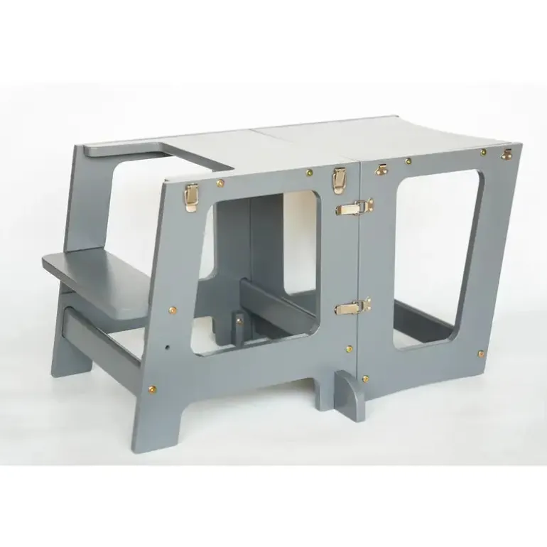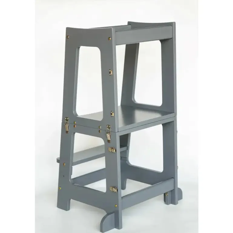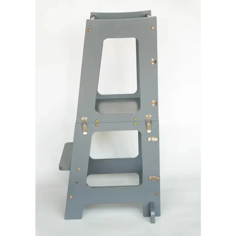 Derudover kan det sammenklappelige læringstårn også fungere som bord og stol, da tårnet kan indstilles i flere forskellige højdeniveauer for at matche dit barns udviklingstrin. Tårnet er designet med vores intelligente og innovative klik-system, hvilket gør det nemt at samle, adskille og justere efter dit barns behov.