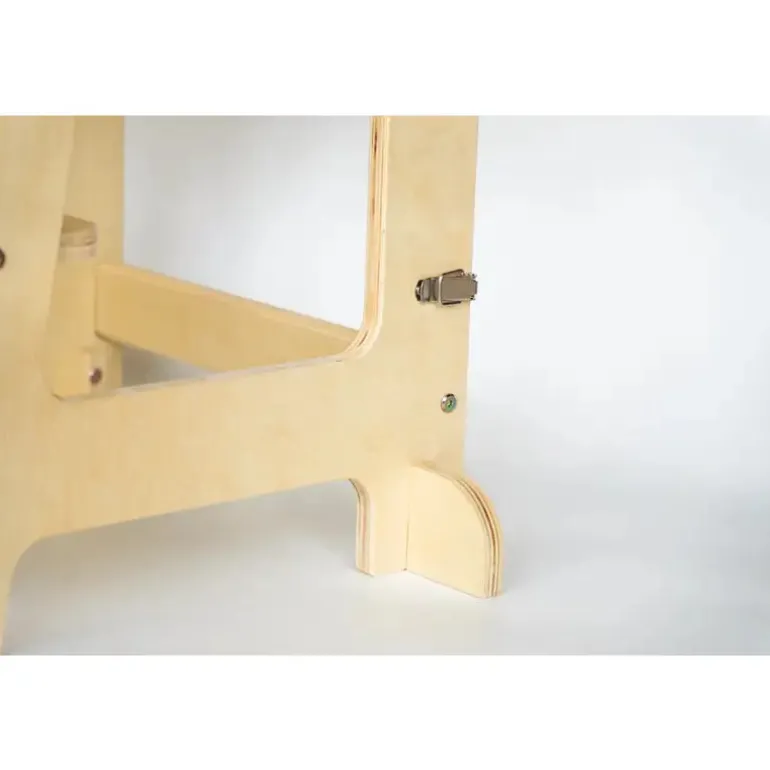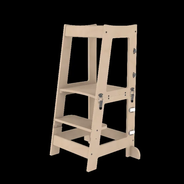 Derudover kan det sammenklappelige læringstårn også fungere som bord og stol, da tårnet kan indstilles i flere forskellige højdeniveauer for at matche dit barns udviklingstrin. Tårnet er designet med vores intelligente og innovative klik-system, hvilket gør det nemt at samle, adskille og justere efter dit barns behov.