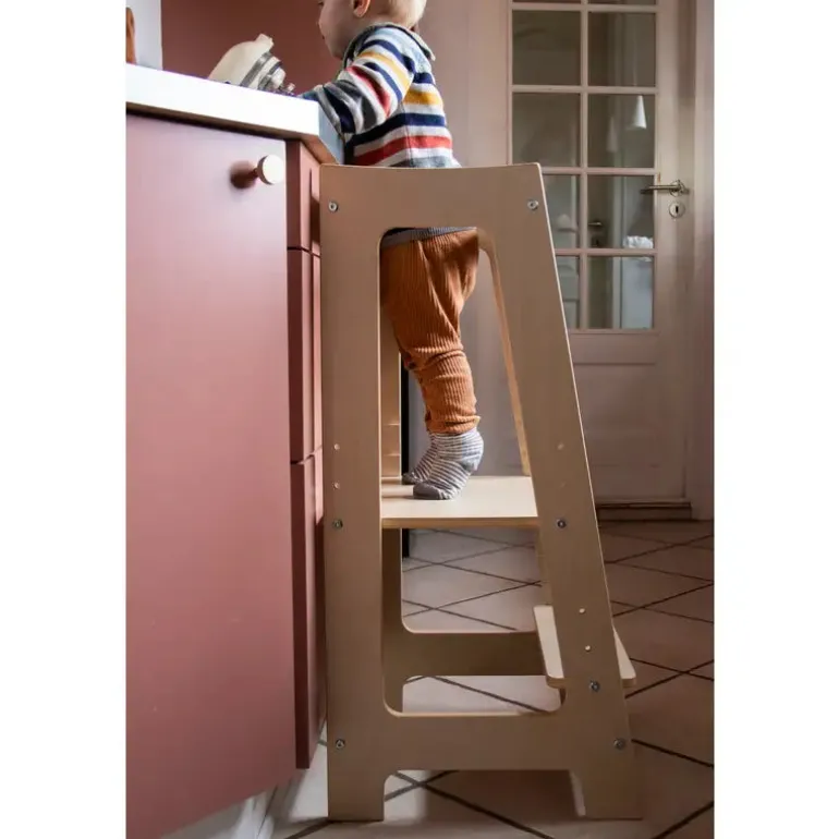 Læringstårnet er fremstillet af robuste materialer, og den medfølgende rygstøtte sikrer, at dit barn står sikkert og stabilt på læringstårnet. Samtidig kan læringstårnet indstilles i 3 forskellige højder, så det passer til mange forskellige situationer.