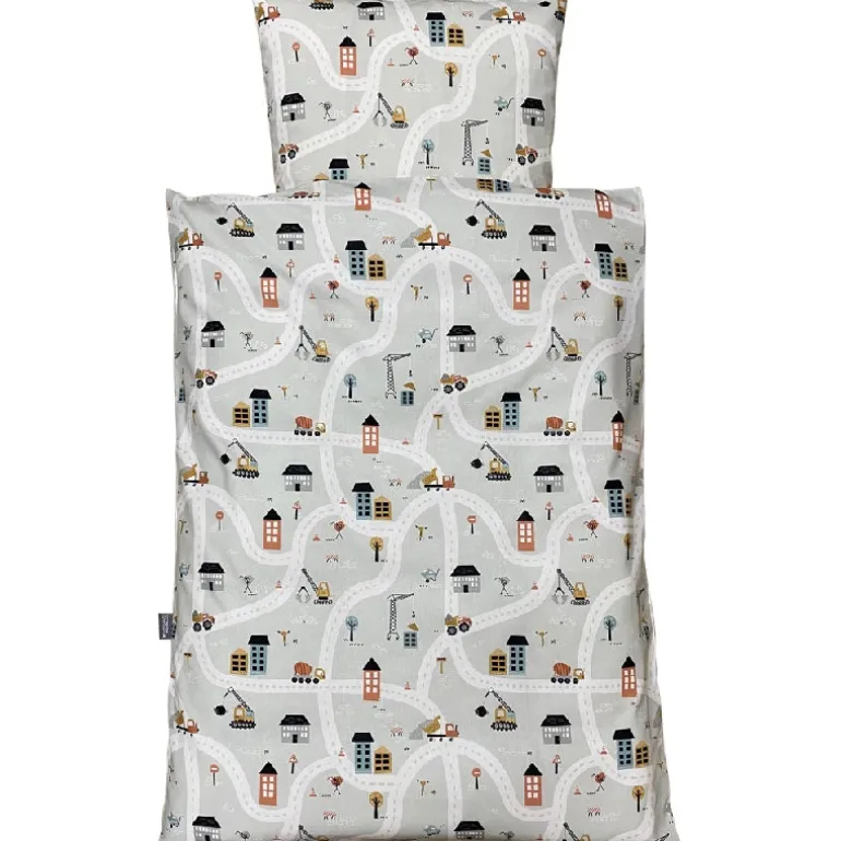 Junior sengelinned, dess. 1241 lys grå m/ veje og stopskilte