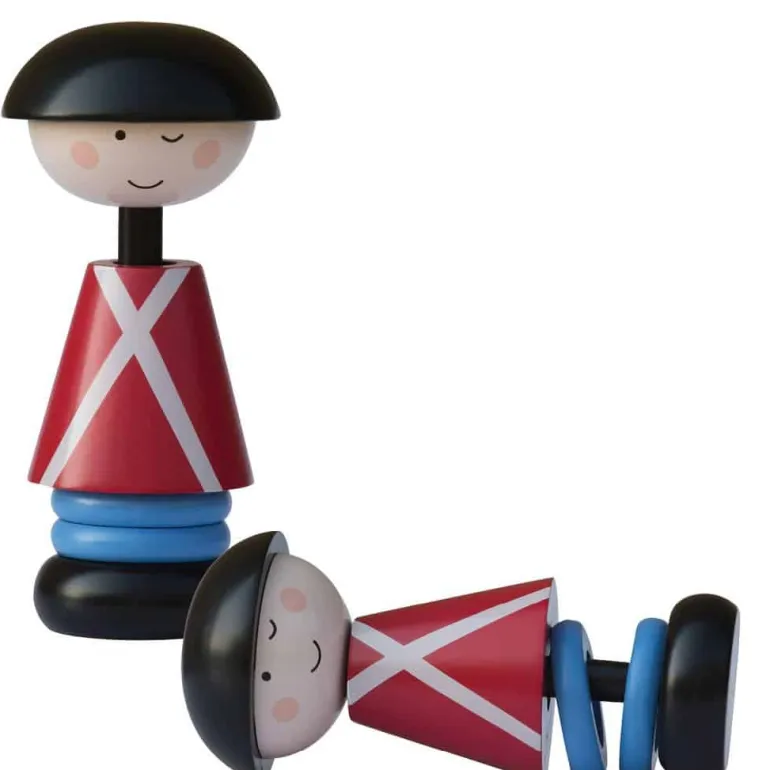 Aktivitetsrangle dreng en sød lille rangle til de mindste. Den søde aktivitetsrangle forestiller en lang og tynd soldat med uniform og bjørneskindshue.