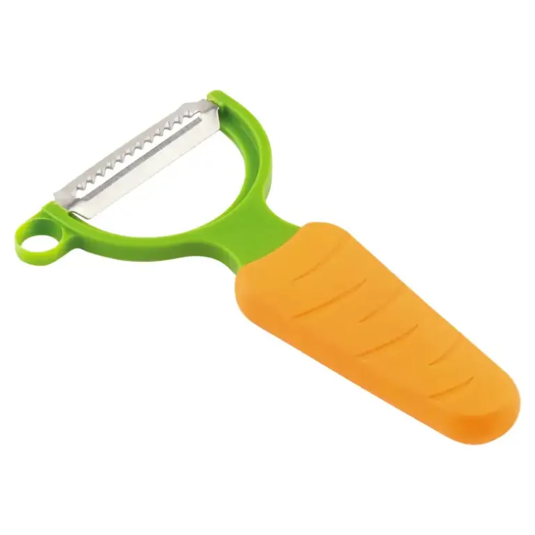 Julienneskrællerens Y-form, samt det flade og bløde silikonegreb, gør den nem at bruge. Den er samtidig finurlig, da den faktisk ligner en gulerod. Håndopvask anbefales for dette produkt. Vær opmærksom på, at klingen er skarp.
