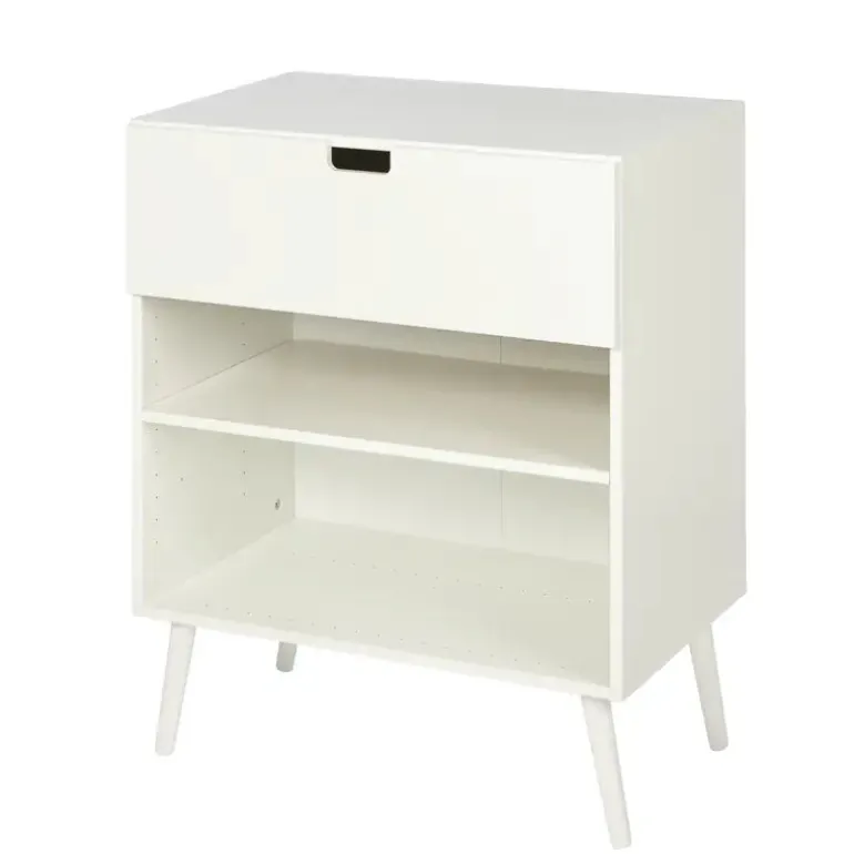 Puslekommode med god pusleplads og gode opbevaringsmuligheder under i form af stor stabil skuffe og en højdejusterbar hylde. Kommoden kan efterfølgende anvendes alene, uden pusleplade. Den er i rigtig høj kvalitet og vil være uden brugsmærker fra pusletoppen. Puslekommoden er i et stilren design og utrolig robust, så du sikre en stabil pusletop til barnet. Mulighed for tilkøb af puslehynde