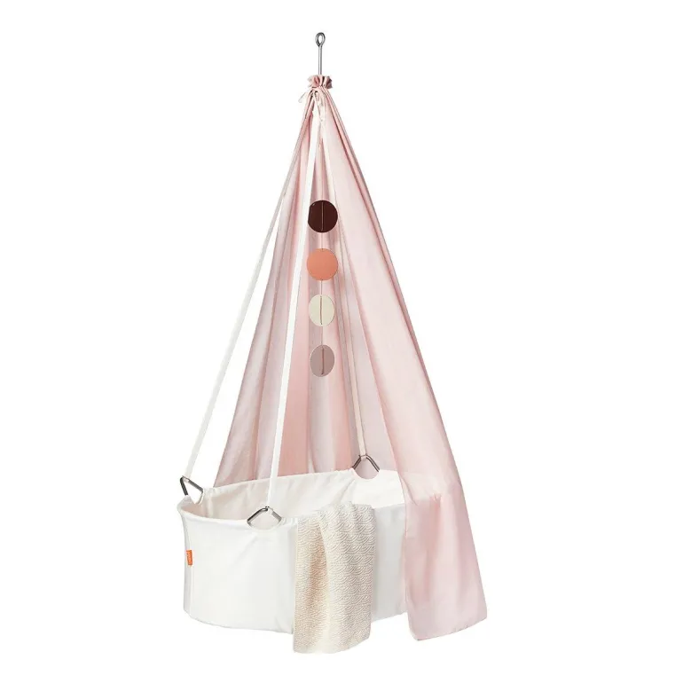 Vedligeholdelse: Vuggepose maskinvaskes ved max 60 °C uden brug af blegemiddel. Strækkes i våd tilstand. Brug ikke tørretumbler.