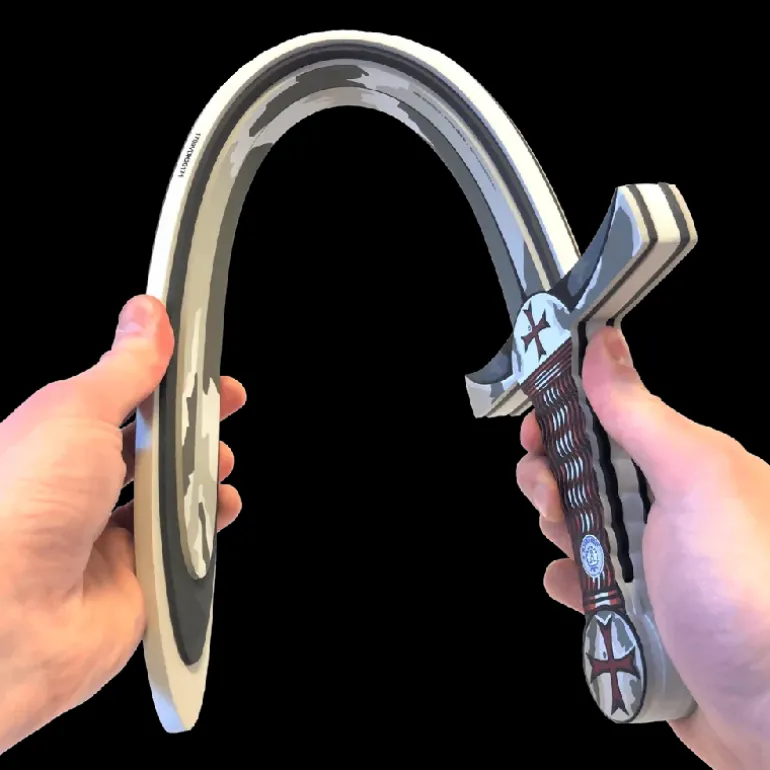 Sværdet er fremstillet i skum med flotte detaljer, der giver et klassisk og autentisk udtryk, samtidig med at det er sikkert at lege med. Det er designet med fokus på det essentielle: en stærk, lige klinge, en solid parerbøjle og en god vægtfordeling, som gør det nemt at manøvrere i kamp.