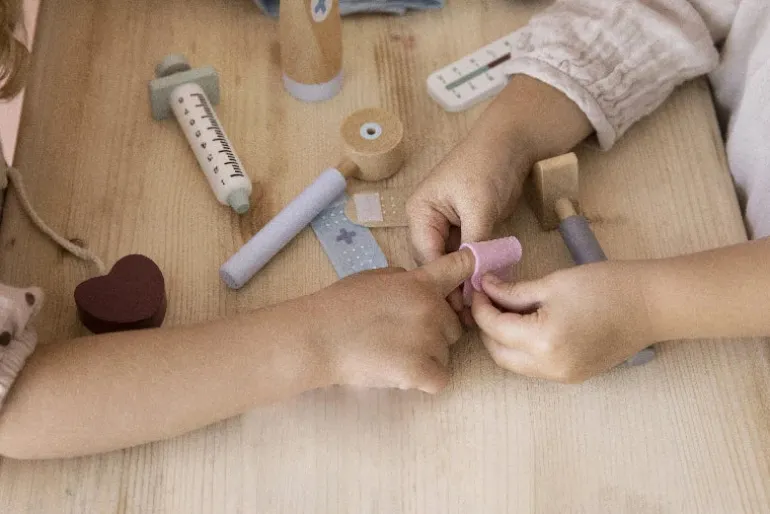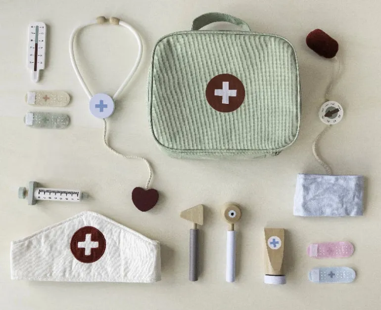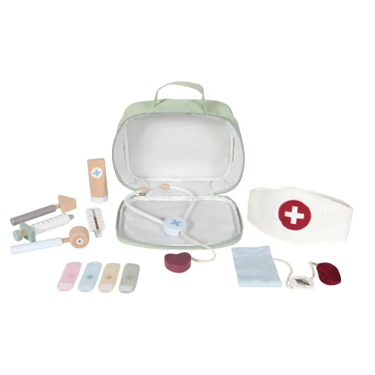 Dine patienter vil hurtigt få det meget bedre når du har denne lægetaske ved hånden. Mål deres temperatur, tjek deres hjerteslag og blodtryk og behandle deres sår. Lægesættet understøtter rollespil og lærer børn at et lægebesøg overhovedet ikke er farligt!