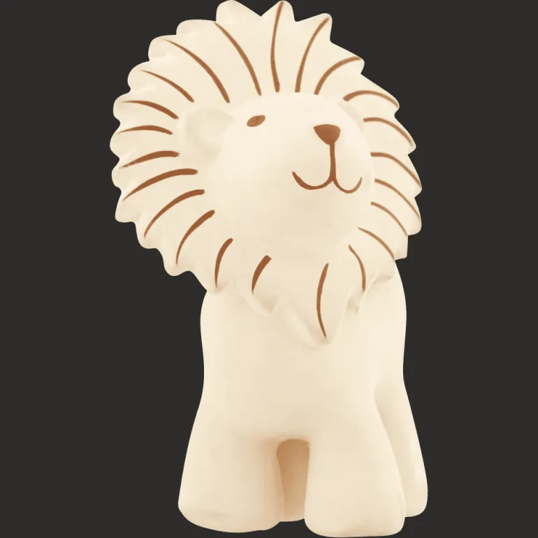 En sød lille gummi løve. Den er fantastisk til små ømme tænder og nemt for barnet at gribe og klemme om. Produktet har en lille klokke, der laver små ranglelyde som vil glæde og underholde de små. Produktet er Fremstillet af naturgummi, der høstes fra gummitræer, med en 12-årig livscyklus. BPA og phtalates fri.