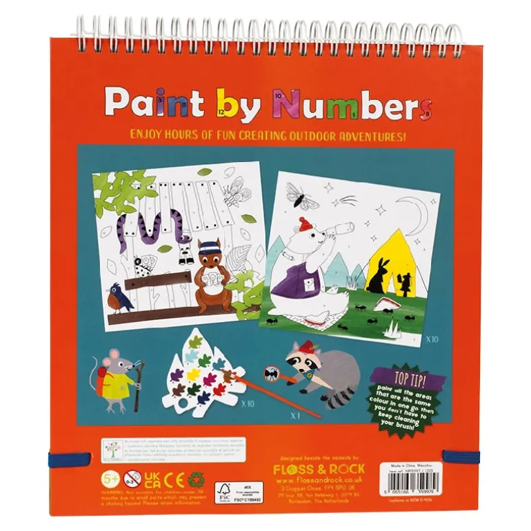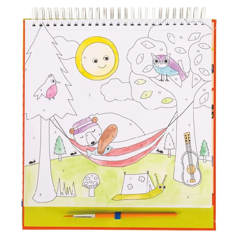 Spiralbundet malebog inkluderer 10 individuelle malerpaletter formet som en sommerfugl, 10 smukke billeder og en malerpensel. Du skal blot tilføje en lille mængde vand på din pensel, stryge hen over malingsfarven på paletten. Du skal nu følge tallene der viser hvilken – og hvor farven skal være. Lad eventyret begynde!