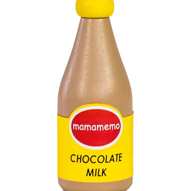 Mamamemo Chokolademælk på flaske. Rigtig fin chokolademælk på flaske, som er en klassiker når børnene skal lave fødselsdagsbord og hører til blandt favoritter i rolleleg med legekøkkener. Passer perfekt ind i et veludstyret legekøkken. Kan anvendes allerede fra barnet er 2 år. Sjov legemad i træ, der vækker genkendelse hos barnet. Super flot designet legemad med en flot finish.