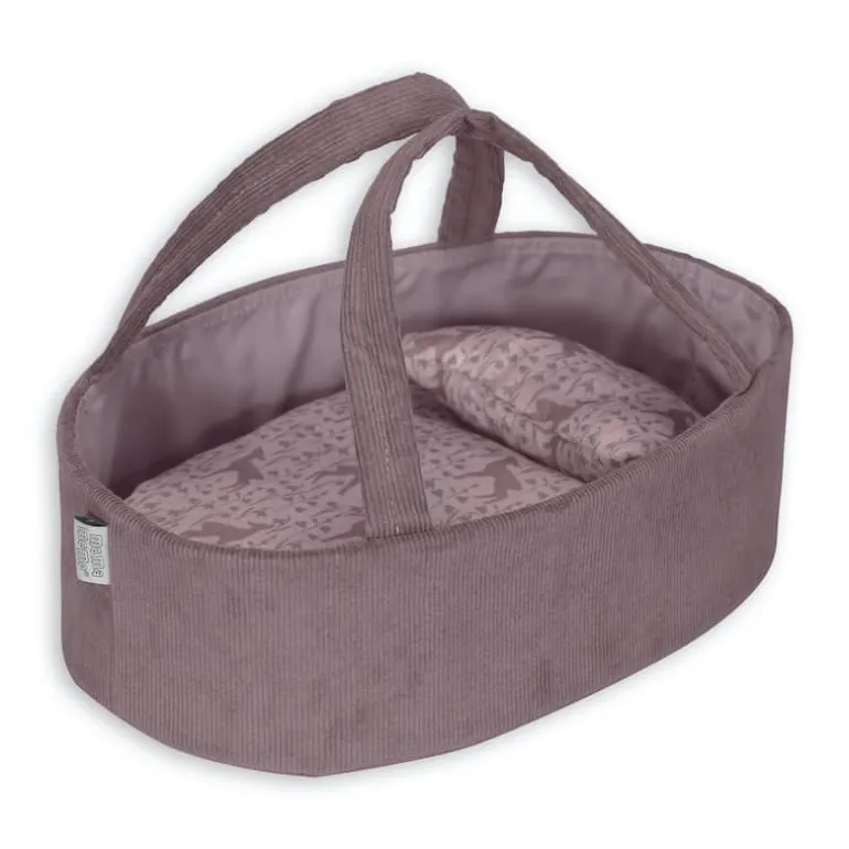Den ovale dukkelift fra Mamamemo Dolls er syet i det lækreste fløjlsstof, der matcher spisesættet og pusletasken i samme serie. Siderne er afstivede, og de to hanke gør det nemt at bære dukken/bamsen i liften.