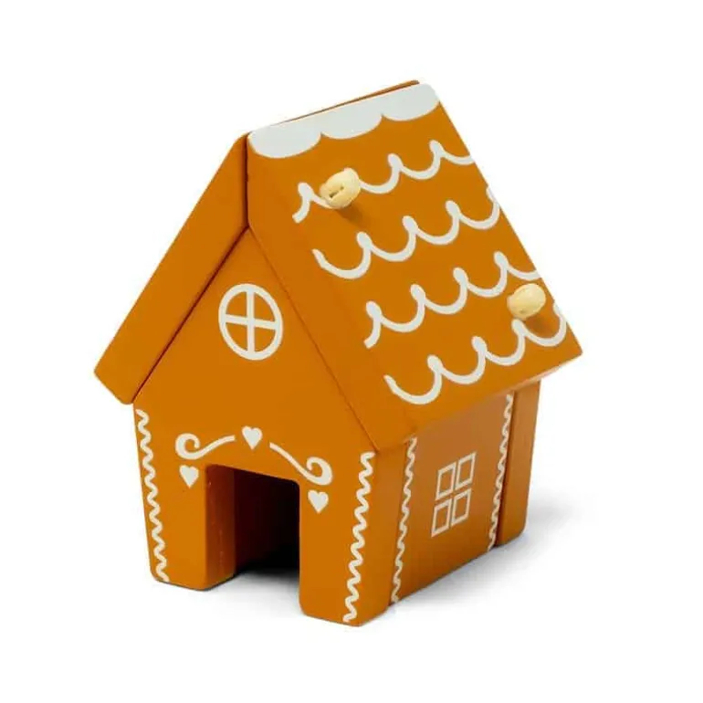 Fint honningkagehus i træ pyntet med hvid glasur.