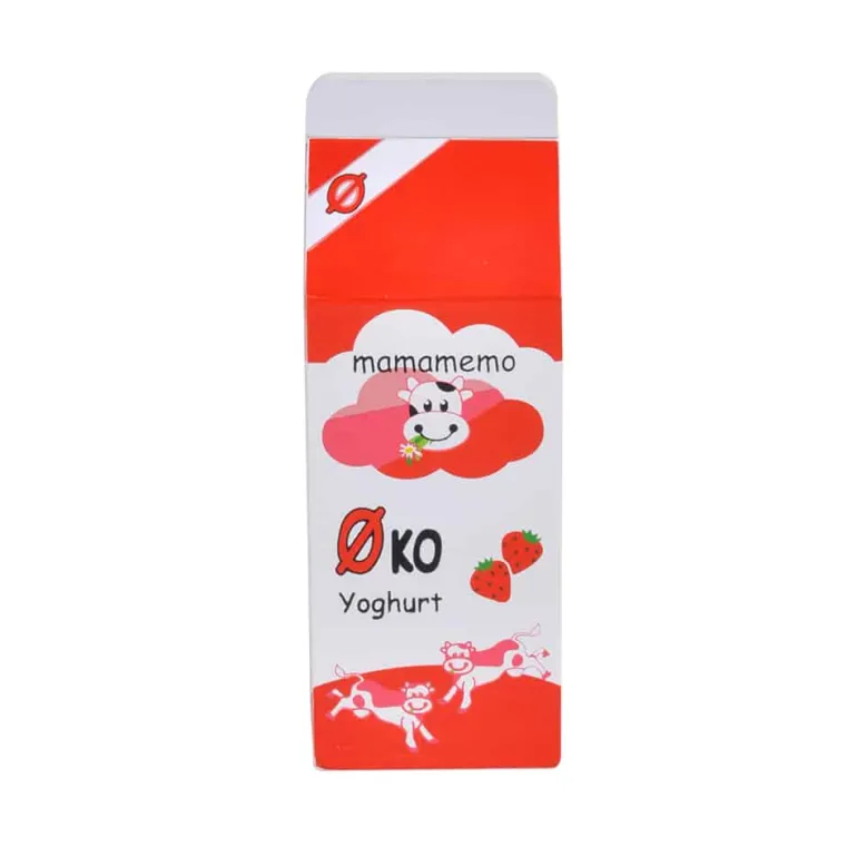 Mamamemo Yoghurt Jordbær. Denne yoghurt karton med jordbær, passer perfekt ind i et veludstyret legekøkken. Kan anvendes allerede fra barnet er 2 år. Sjov legemad i træ, der vækker genkendelse hos barnet.