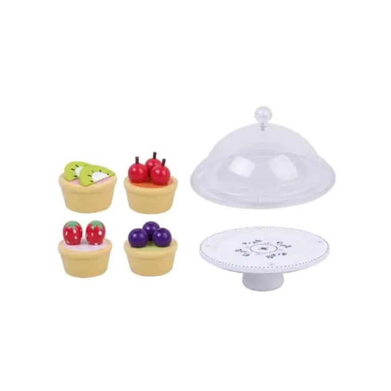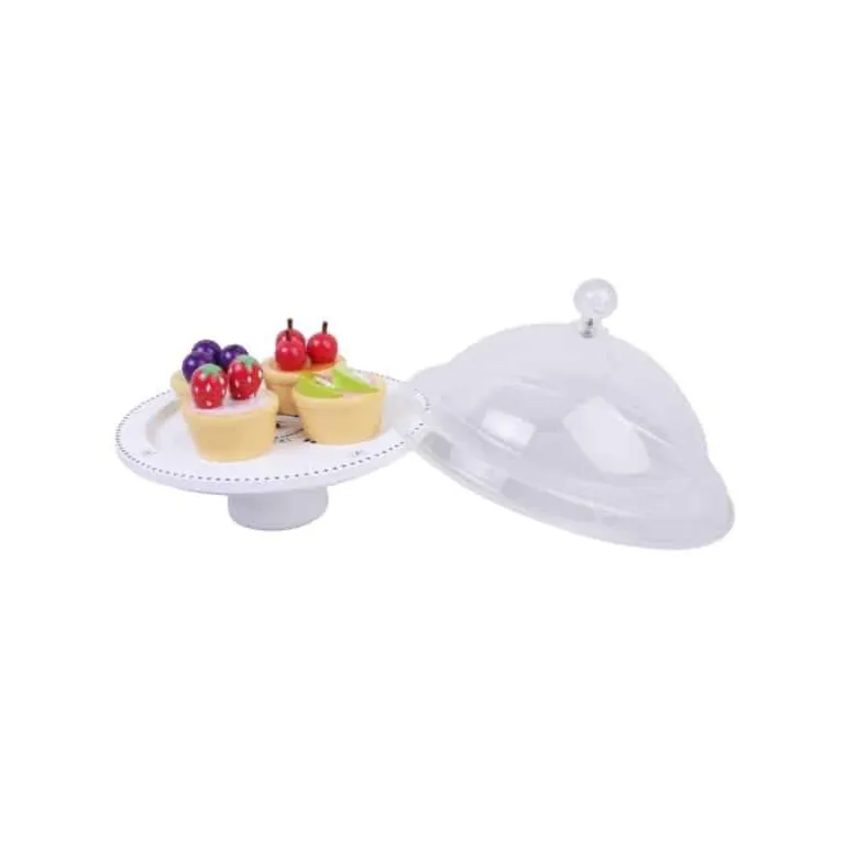 Mamamemo Tærter på fad m/låg, lækre tærter serveret på et hvidt fad med blåt mønster. Derudover medfølger et låg lavet i acryl.