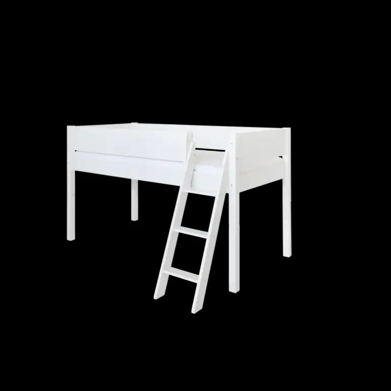 Mari er en halvhøj designseng med skråstige, som gør det nemt at klatre op i sengen. Fåes i størrelse 160 cm og 200 cm.