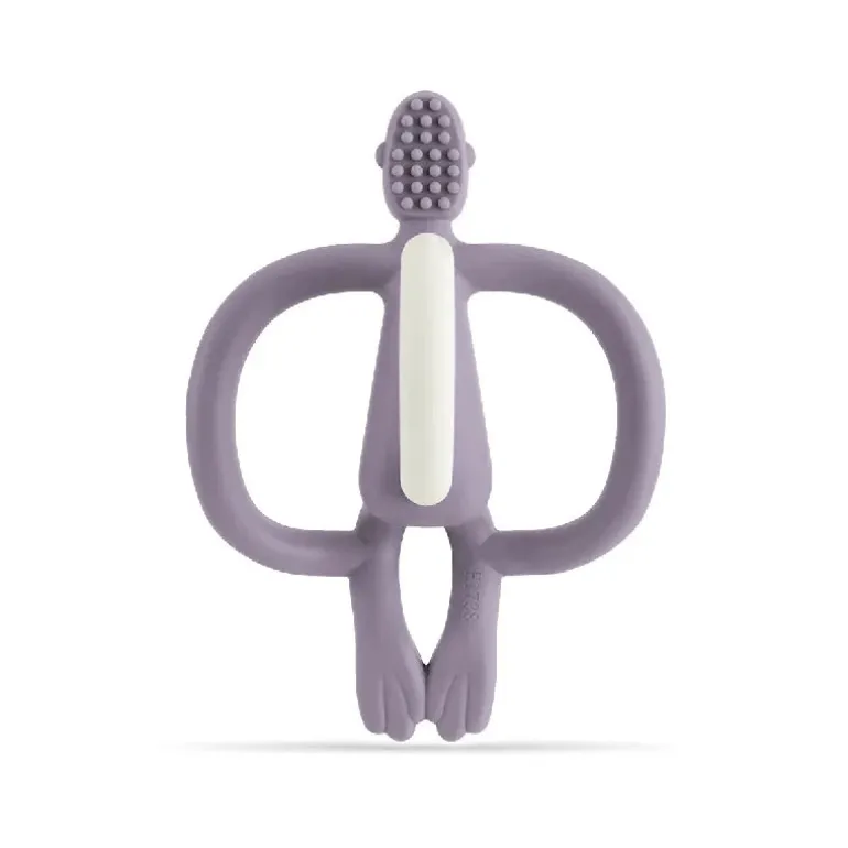 Dette originale bidelegetøj er innovativ letvægtsbidelegetøj i silikone. De smarte knopper på bagsiden af hovedet af Matchstick Monkey Bidedyr Lilla gør det nemt at få bidelegetøjet frem til de svært tilgængelige kindtænder, uden at af små tænder får fat.