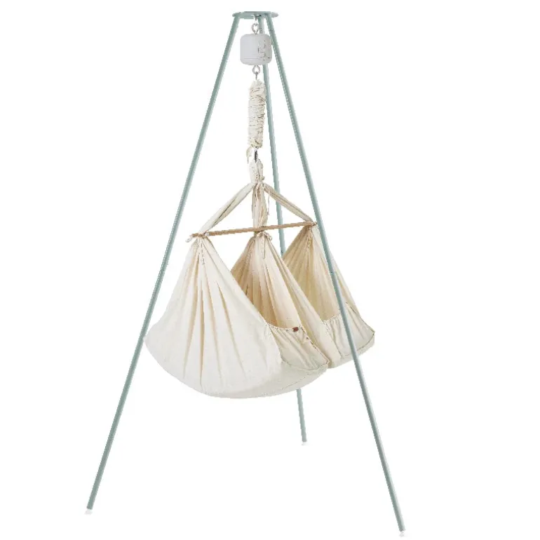 Designet og udviklet i Danmark. Basic vuggestativ er specialdesignet til brug af slyngevugge og tvillingeslyngevugge – både med og uden vuggemotor.