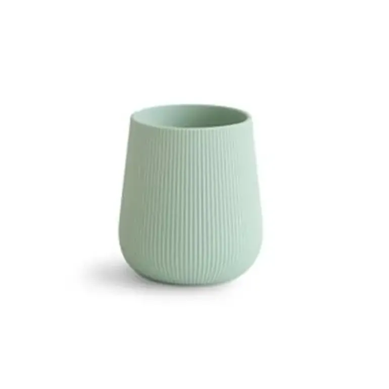 Koppen er designet med en ribbet yderside, der sikrer et skridsikkert greb, så dit barn trygt kan udforske nye drikkefærdigheder. Den tunge base holder koppen stabil på bordet, mens det bløde, fødevaregodkendte silikone-materiale er skånsomt mod både ømme gummer og nye tænder.