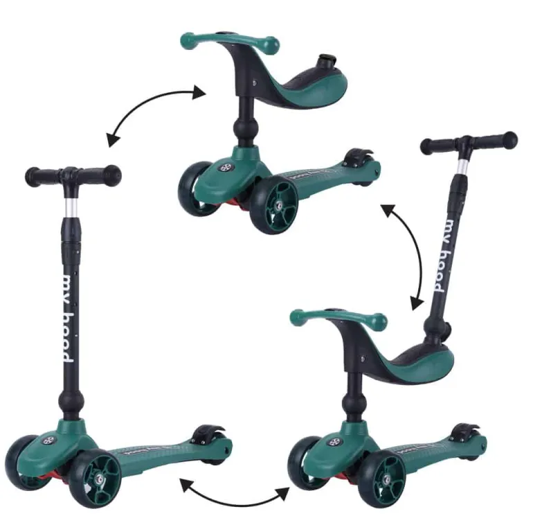 Når balance og motorik er tilstrækkelig udviklet kan Kick’n’Ride nemt omdannes til et smart løbehjul. To store hjul foran og en mindre bagerst gør løbehjulet måde stabilt og nemt at køre på.