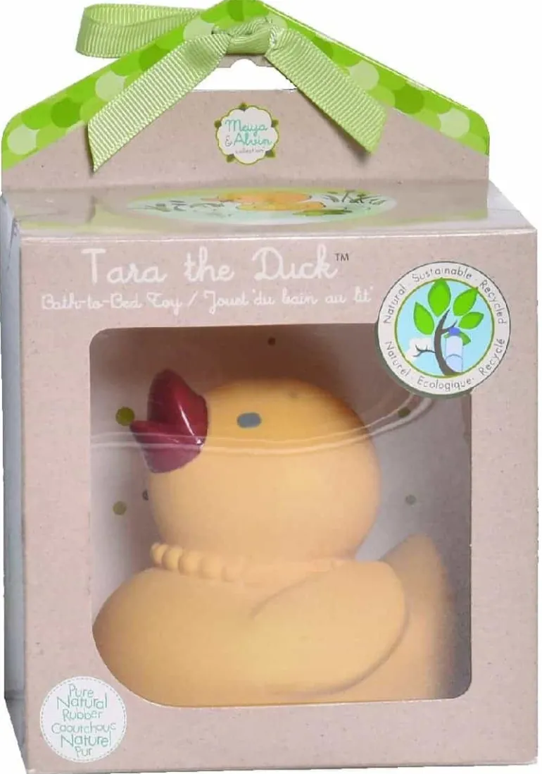Anden Tara i naturgummi – biderangle og badelegetøj. Den er fantastisk til små ømme tænder og nemt for barnet at gribe og klemme om. Produktet har en lille klokke, der laver små ranglelyde som vil glæde og underholde de små. Produktet er Fremstillet af naturgummi, der høstes fra gummitræer, med en 12-årig livscyklus. BPA og phtalates fri.