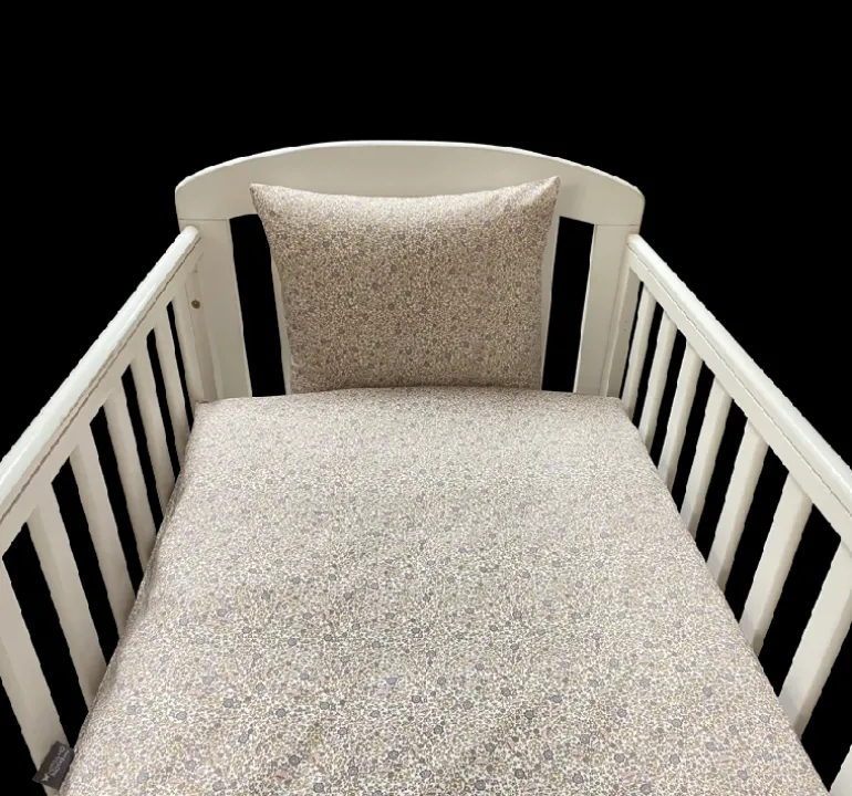 Baby sengelinned, dess. 664 lilla blomster ORGANIC, str. 70×100-40×45 cm.