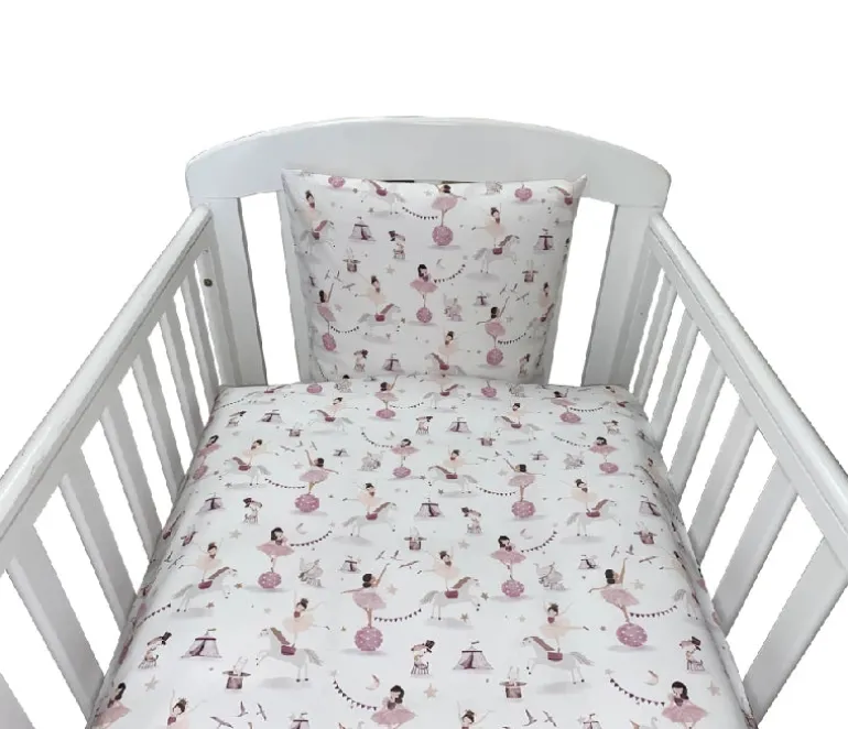 Baby sengelinned, dess. 1164 off-white m/ blomme farvet ballerina, str. 70×100+40×45 cm.