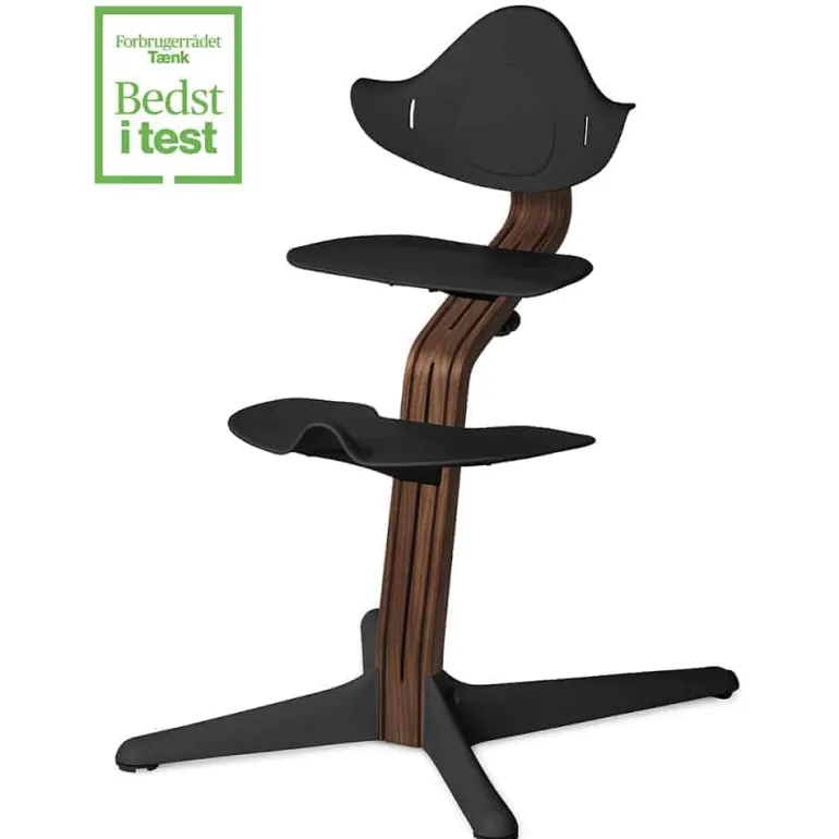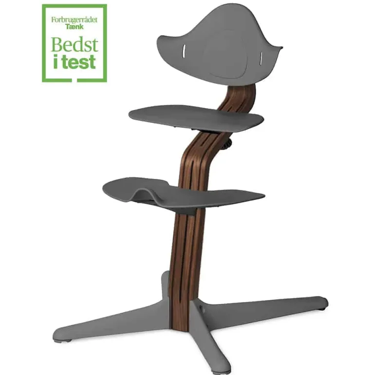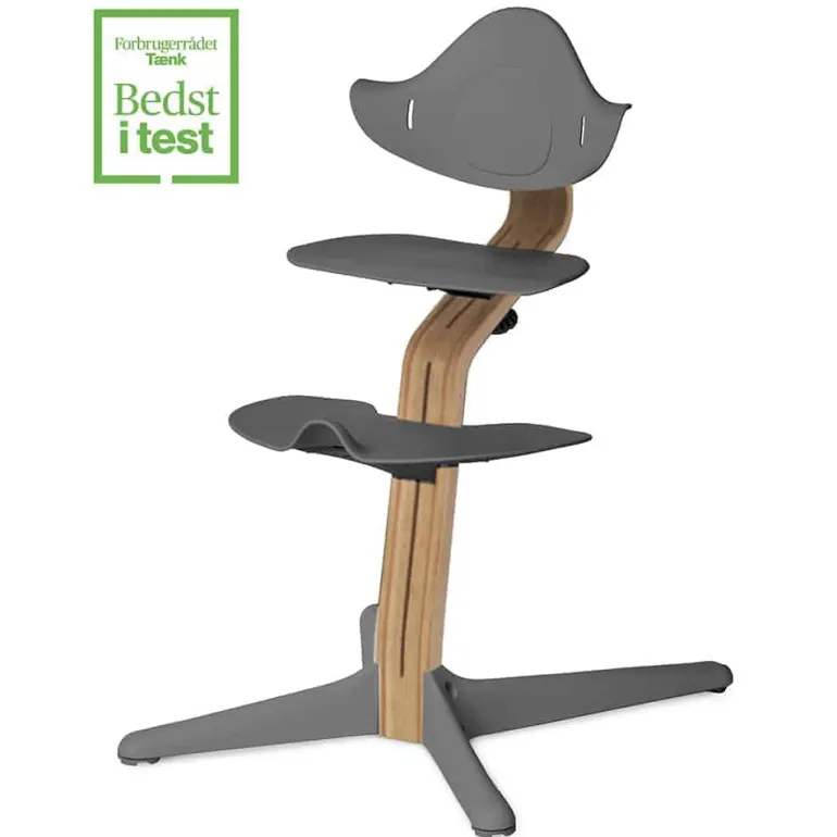 Når barnet selv kan kravle op og ned, tages Nomi Mini af. Sæde og fodplade justeres trinløst i takt med, at barnet vokser. Stammens form sikrer, at dybden på sæde og fodplade automatisk tilpasses. Den åbne konstruktion inspirerer til fri bevægelse og gør det nemt for barnet at komme op og ned, samt trække sig ind og ud fra bordet.